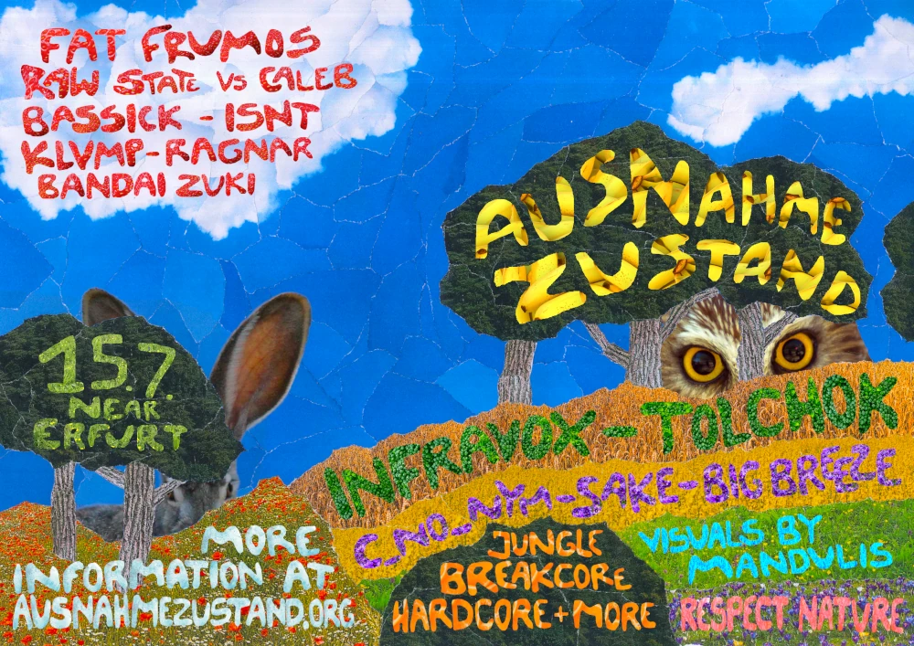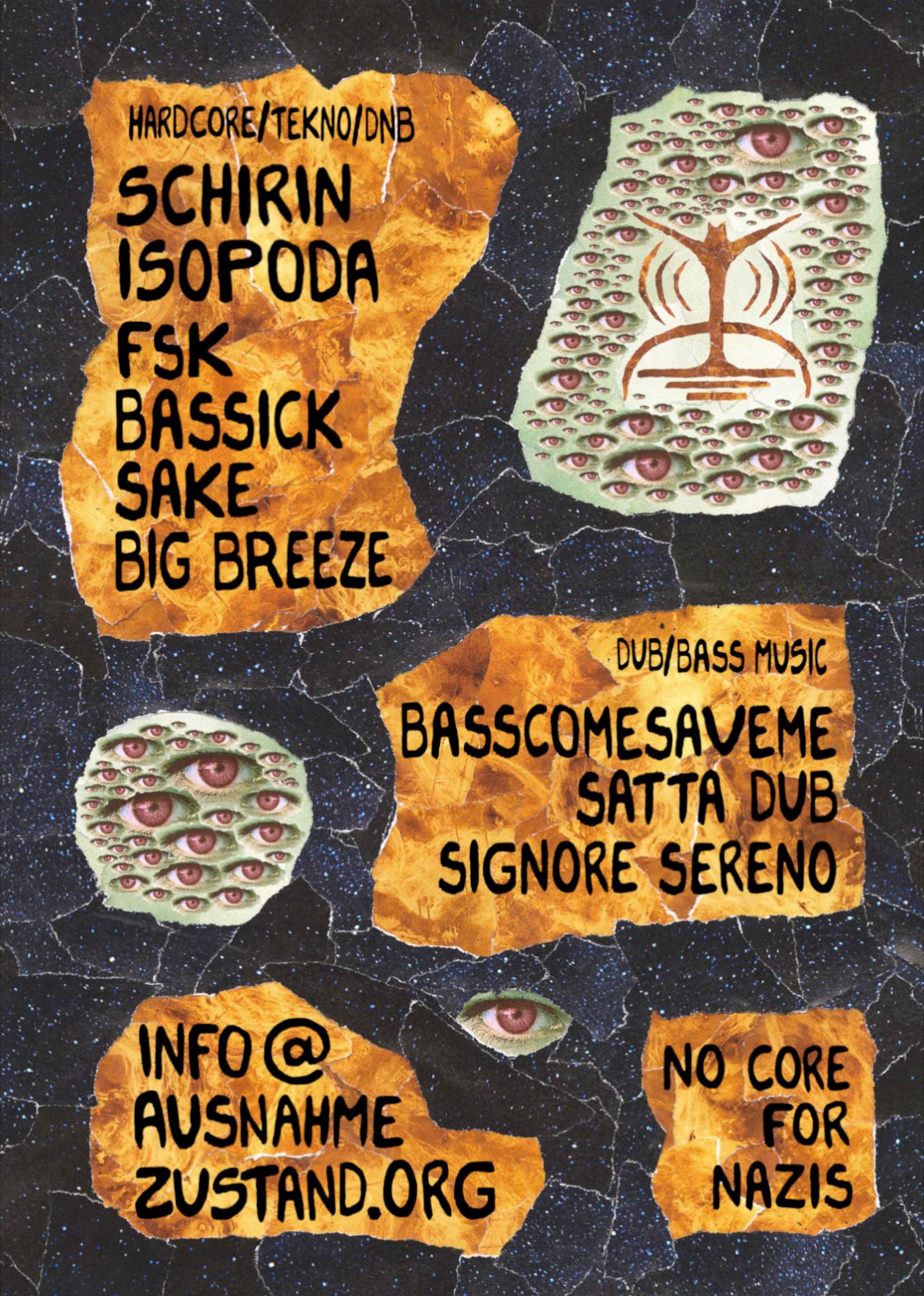 So klingt also das Ende… Nun gut, den Soundtrack zur Apokalypse haben wir euch ja schon oft genug geliefert, aber das wird anscheinend ein ganzes Orchester aus Distortion. Für unseren letzten Gig möchten wir noch ein Mal alles geben und das ganze Ausnahmezustand Erlebnis in eine Nacht pressen. Ihr habt Bock auf Jungle, Breakcore, Industrial, Hardcore und noch so viel mehr? Wir doch auch! Also ganz einfach, sagt allen Leuten Bescheid und kommt am 13.12. zahlreich vorbei.
