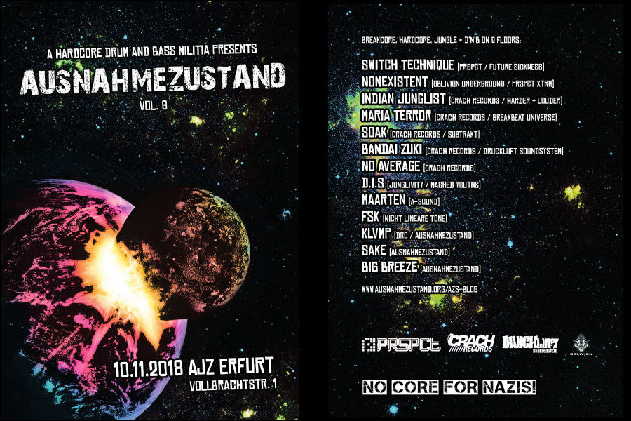 Im Moment beschränken wir uns noch vorwiegend auf unsere Veranstaltungen. Mit wechselnden Schwerpunkten versuchen wir ausgewogene Lineups zusammen zu basteln, bei denen die nötige Härte nicht verloren geht. Mal liegt der Fokus mehr auf Breakcore und ein anderes Mal auf Crossbreed oder Hardcore. Dazu gibt es jeweils einen zweiten Floor, auf dem es dann etwas ruhiger oder etwas härter zugeht. Damit sollen auf beiden Floors bestenfalls Berührungspunkte für alle Anwesenden entstehen.