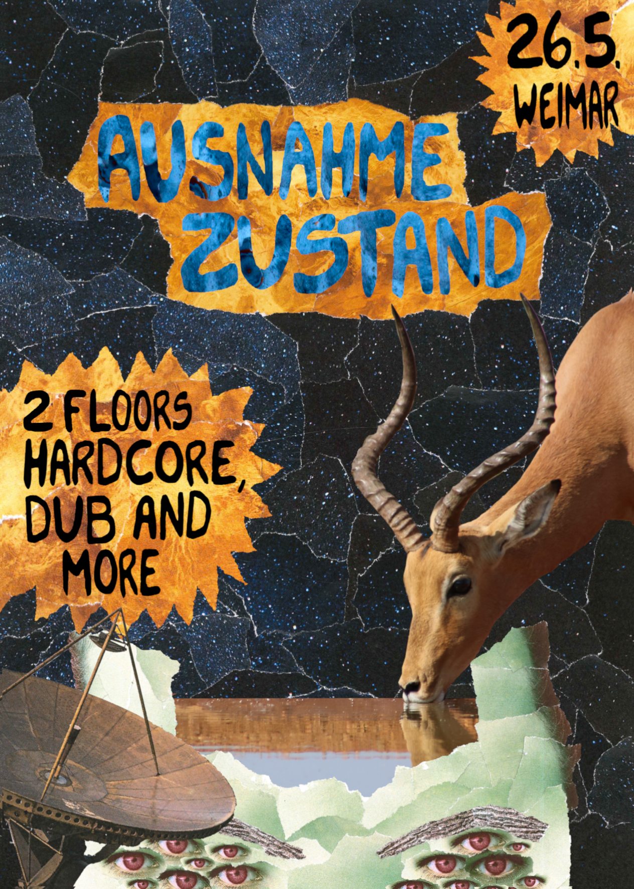 Was machen wir eigentlich? In erster Linie wollen wir das musikalische Ödland Thüringens um eine kleine weitere Attraktion bereichern. Da es hier nicht so richtig viel in der Richtung gibt, möchten wir euch (und uns) wenigstens ab und an eine Anlaufstelle für harte elektronische Musik bieten. Zwar ist es schön für Events hunderte Kilometer durch halb Mitteleuropa zu fahren, doch fehlen vergleichbare Angebote in unserer Region schlichtweg. So war die Idee geboren und wenig später darauf Ausnahmezustand.